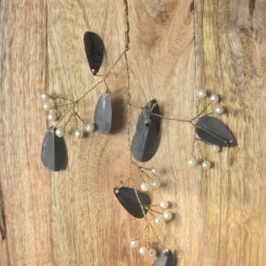 Matte Black Leaf & Pearl Hanging Ornament (Brass Wire)
