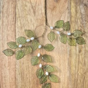 Branch with Green leaf – Green Leaf & White Berry Hanging Ornament (Brass Wire)